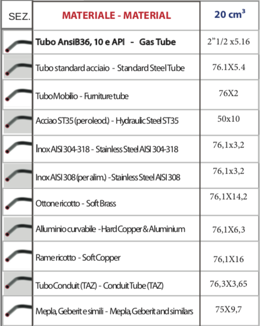 - Capacidade de dobrar para a direita e para a esquerda, utilizando ferramentas especiais, proporcionando maior versatilidade e adaptação a diferentes requisitos de curvatura. Como resultado, amplia-se a variedade de aplicações possíveis.